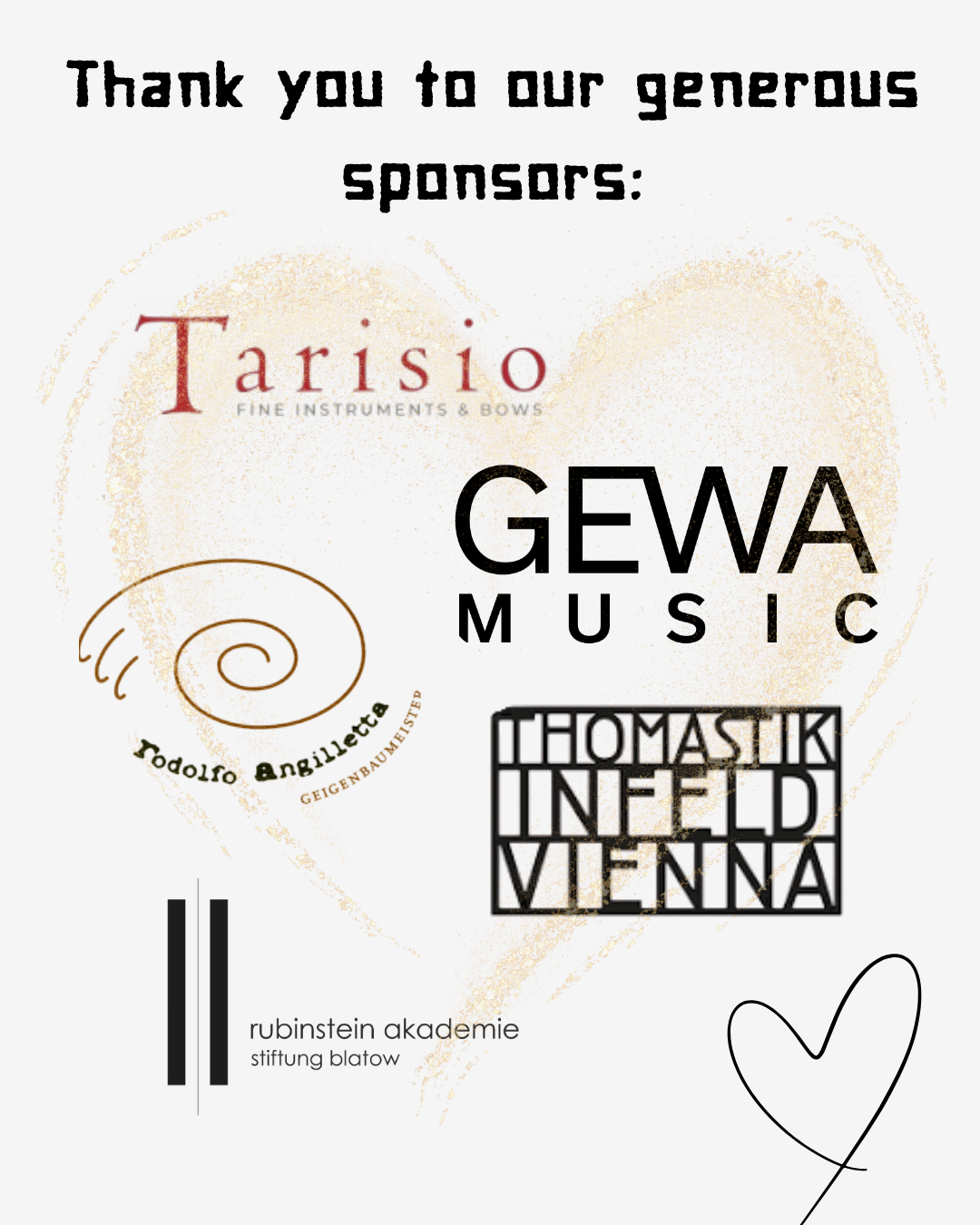 Your commitment not only makes this competition a reality, but also plays a vital role in nurturing young talent and shaping the future of classical music. Whether through financial support, accessories, visibility or mentorship – each of you contributes something truly invaluable.